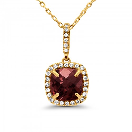 10K Yellow Gold 1.81ct Cushion Garnet & Diamond Pendant Necklace 18″