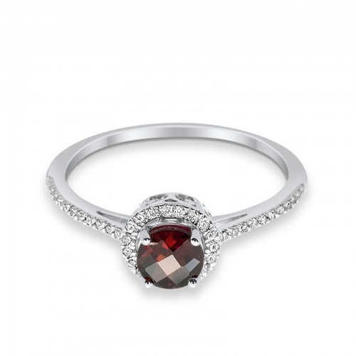 10K White Gold Round .95cts Round Garnet Diamond Ring Size 6.5