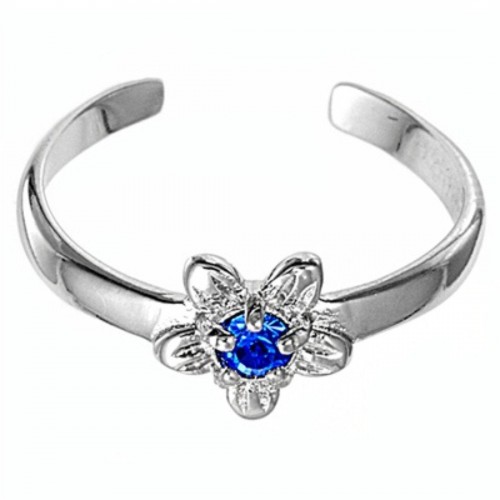 Claddagh Adjustable Silver Toe Ring Band Simulated Blue Sapphire CZ 925 Sterling Silver (7mm)