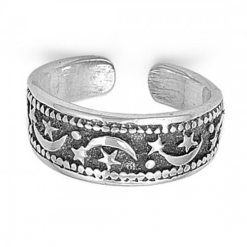 Silver Toe Ring Band Simulated Black CZ 925 Sterling Silver For Women (5mm)