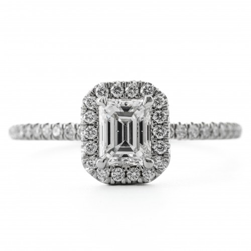 .77CTW Emerald Diamond Engagement Ring – Halo – 14K White Gold