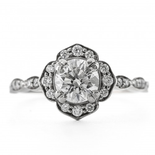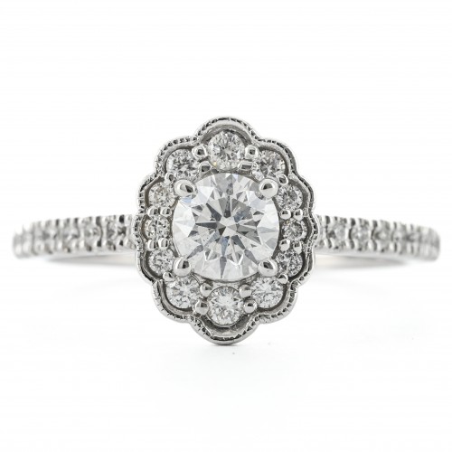 .70CTW Round Diamond Engagement Ring – Scalloped Halo – 14K White Gold