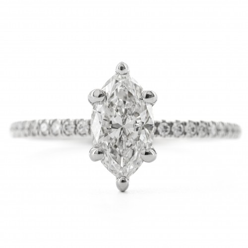 1.18CTW Marquise Diamond Enagement Ring – Hidden Halo – 14K White Gold