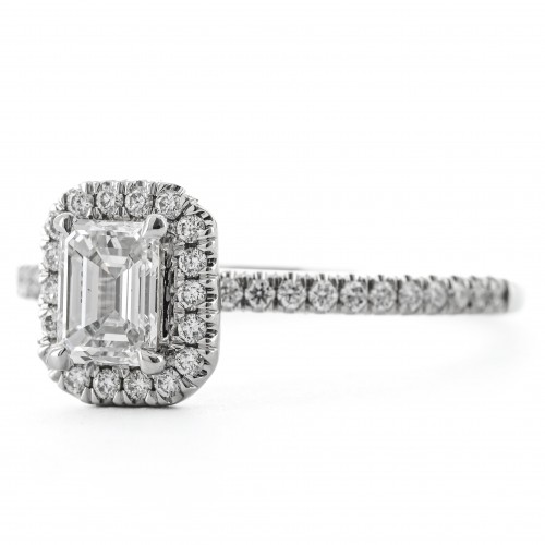.77CTW Emerald Diamond Engagement Ring – Halo – 14K White Gold