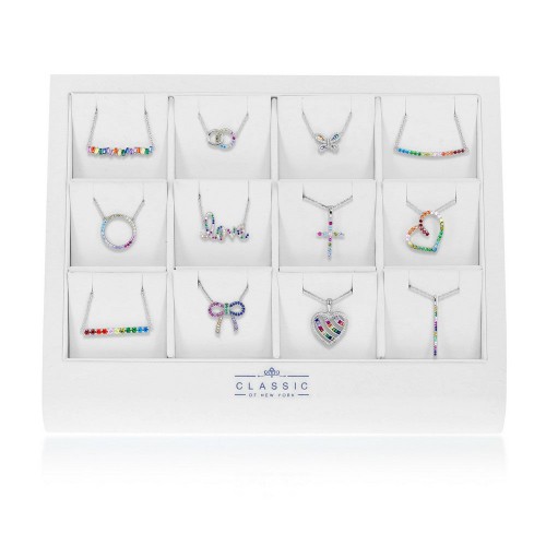 12 PC Sterling Silver Rainbow CZ Necklaces on a White Leatherette Display