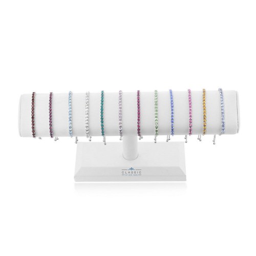 12PC Swarovski Birthstone Adjustable Bolo Bracelets on a White Leatherette Display