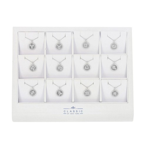 12PC Zodiac Sign Disc Pendants on a White Leatherette Display