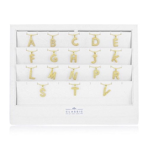 18 PC Sterling Silver CZ Block Initials Collection on a White Leatherette Display