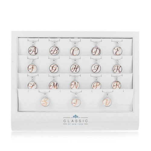 18PC, Sterling Silver MOP Rose Gold Script Initials on a White Leathertte Display