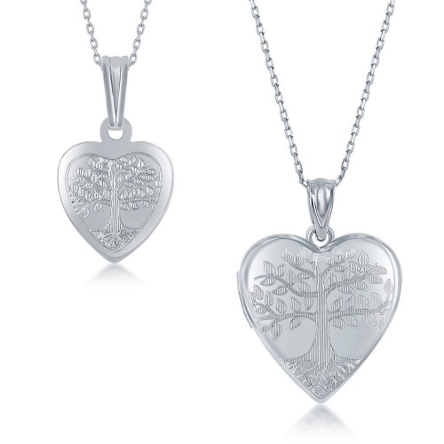 Sterling Silver 2PC Mother & Daughter Set, Heart Pendant + Locket – Tree of Life