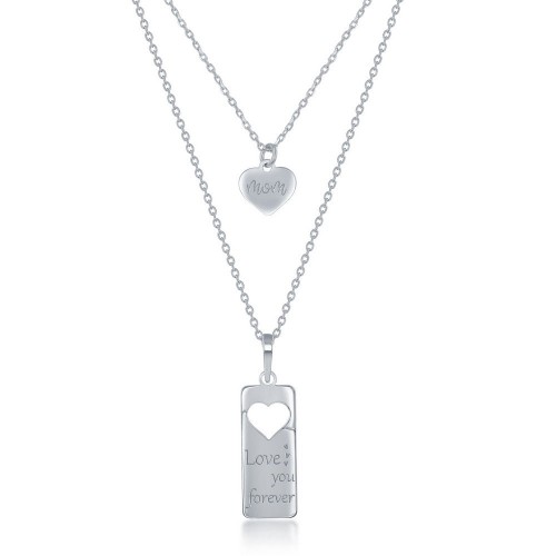 Sterling Silver 2PC Tag Heart Necklace Set – 16+2 Love You Forever Tag & 14+2 Mom Heart