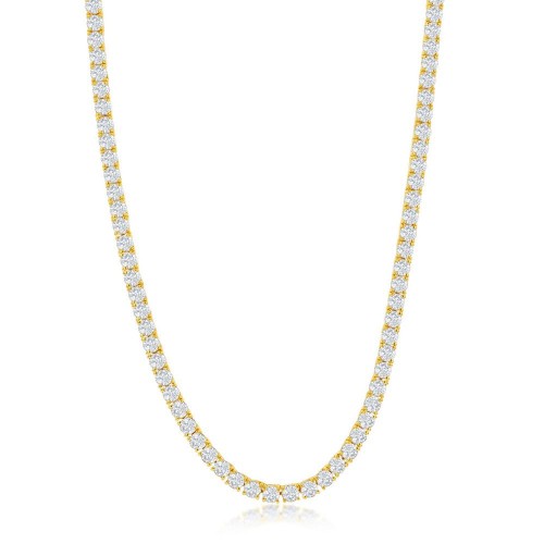 Sterling Silver 4mm Round Cubic Zirconia Tennis Necklace – Gold Plated