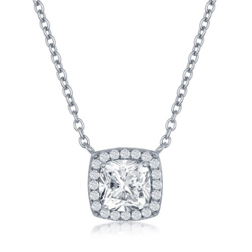 Sterling Silver Cushion-Cut with CZ Border Necklace – Rose Gold Plated