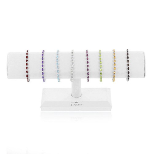 Set of 8, Gemstone Bracelets on a White Leatherette T-Bar Display