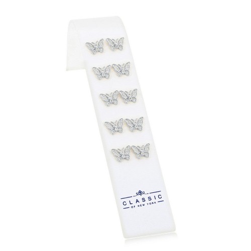 Set of 5 Sterling Silver CZ Butterfly Stud Earrings on a Ramp