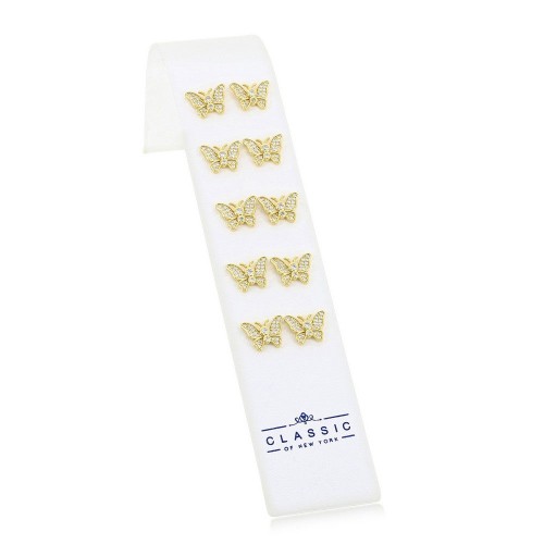 Set of 5 Sterling Silver CZ Butterfly Stud Earrings on a Ramp – Gold Plated