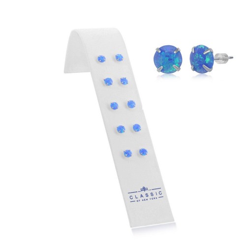 Set of 5, Sterling Silver Four-Prong Round 6mm Blue Opal Stud Earrings with Silicone Pushback
