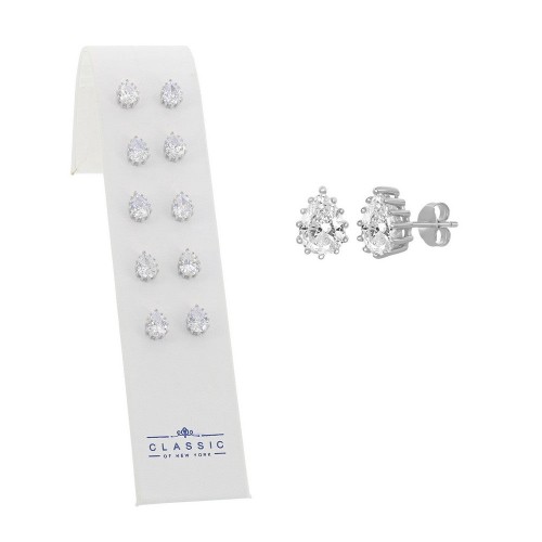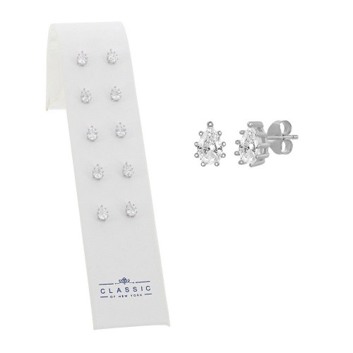Set of 5, Sterling Silver Pronged 9x7mm Pear-Shaped CZ Stud Earrings