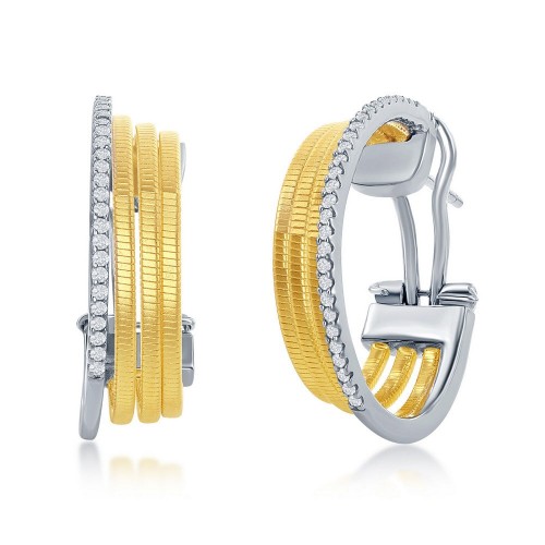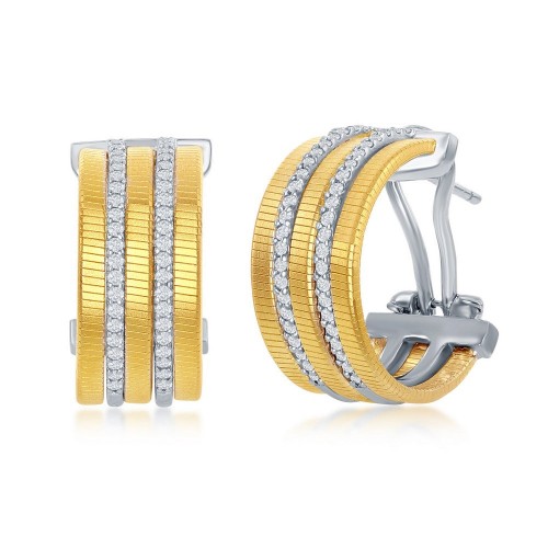 Sterling Silver Designer Earrings, Set with CZ, Bonded with 14K Gold, MADE IN ITALY