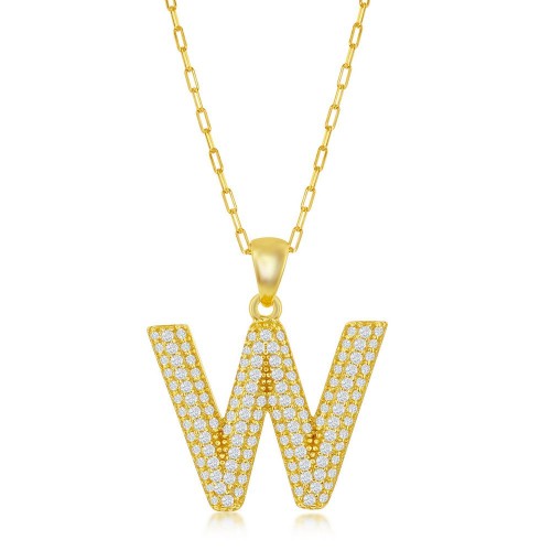 Sterilng Silver Micro Pave CZ V Block Initial w/ Paperclip Chain – Gold Plated