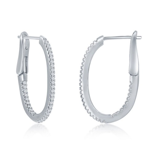 Sterling Silver Ultra-Thin 25mm Hoop CZ Earrings – Pear-Shaped