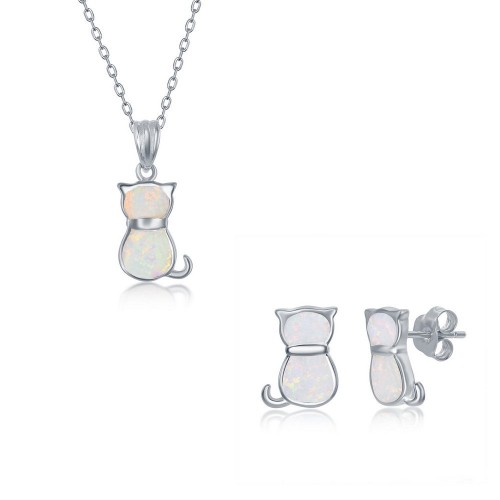 Sterling Silver White Inaly Opal Necklace and Earrings Set – Cat