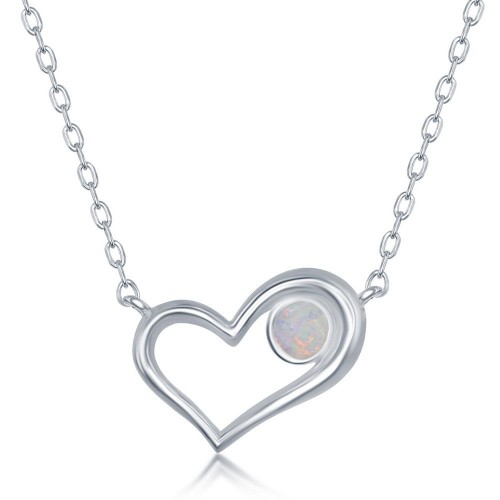 Sterling Silver White Inlay Opal Necklace and Earrings Set – Heart
