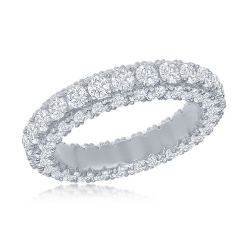 Sterling Silver, All around, Triple Row CZ, Eternity Band – Gold Plated