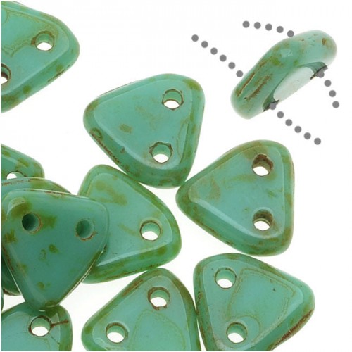 CzechMates Glass 2-Hole Round Flat Lentil Beads 6mm – Turquoise Bronze Picasso (1 Strand)