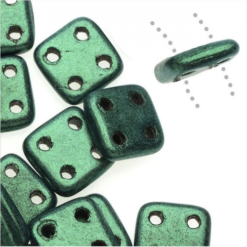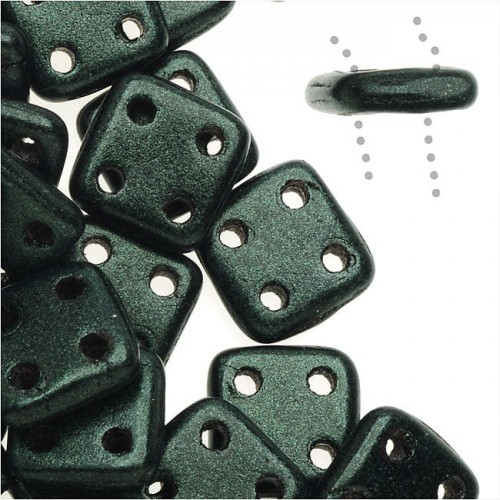 CzechMates Glass, QuadraTile 4-Hole Square Beads 6mm, Metallic Dark Green Suede (2.5″ Tube)