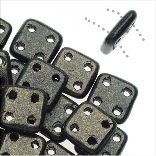 CzechMates Glass, QuadraTile 4-Hole Square Beads 6mm, Metallic Dark Forest Suede (2.5″ Tube)