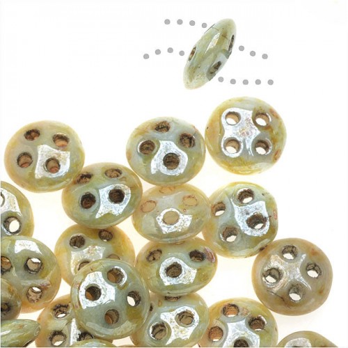 CzechMates Glass, QuadraTile 4-Hole Square Beads 6mm, Metallic Light Green Suede (2.5″ Tube)