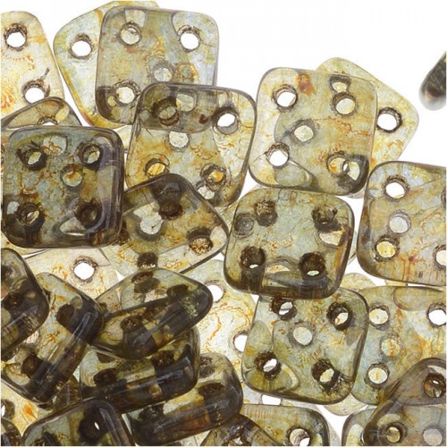 CzechMates Glass, QuadraTile 4-Hole Square Beads 6mm, Transparent Green Luster (2.5″ Tube)