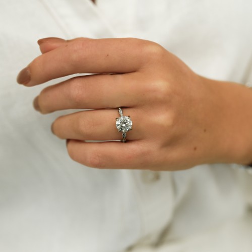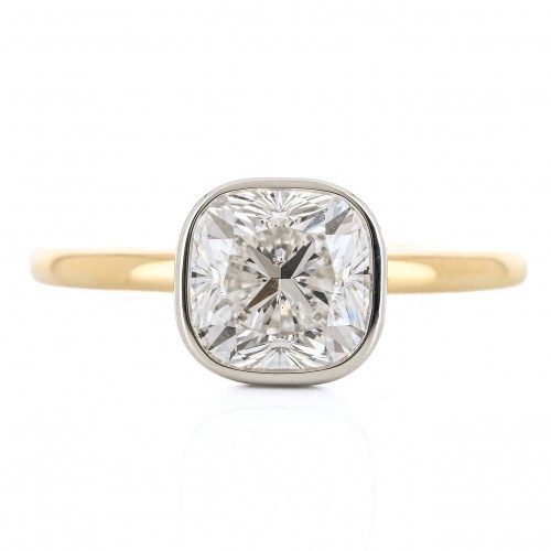 1.47CT Cushion Diamond Engagment Ring – Bezel + Solitaire – 14K Yellow Gold + 950 Platinum