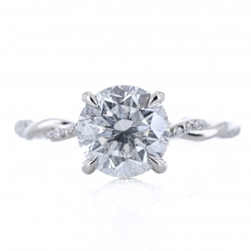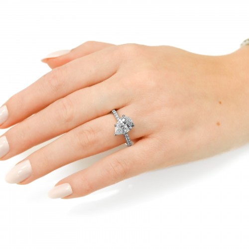 1.95CTW Pear Diamond Engagement Ring – Slanted Solitaire + Pave Band – 14K White Gold