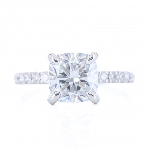 2.96CTW Cushion Lab Grown Diamond Engagement Ring – Solitaire + Pavé Band – 950 Platinum