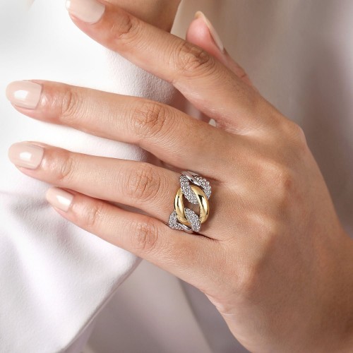 Bujukan Criss-Cross Ring – 14K Yellow Gold + Sterling Silver