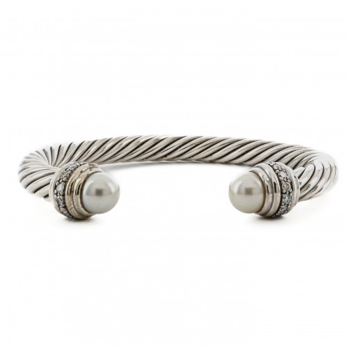David Yurman | Waverly Cable Cuff Bracelet – Onyx + Diamond, 11mm – 925 Sterling Silver