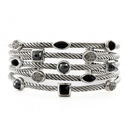 David Yurman | Confetti Cuff Bracelet – Diamond + Onyx + Hematite, 6.5″ – 925 Sterling Sliver