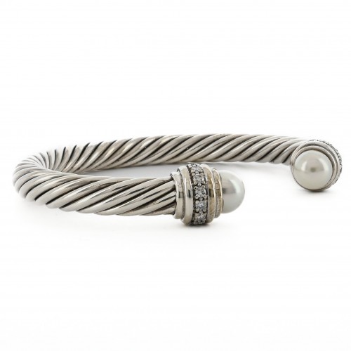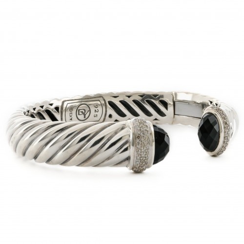 David Yurman | Waverly Cable Cuff Bracelet – Onyx + Diamond, 11mm – 925 Sterling Silver