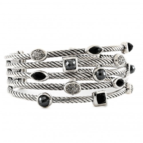 David Yurman | Confetti Cuff Bracelet – Diamond + Onyx + Hematite, 6.5″ – 925 Sterling Sliver