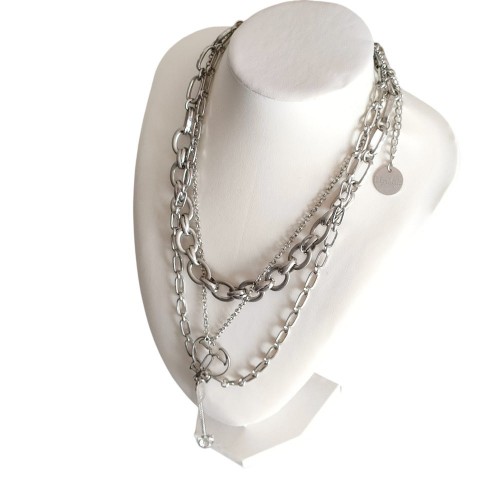 Max Mara Studio Cat Motif Triple Chain Necklace Silver Others
