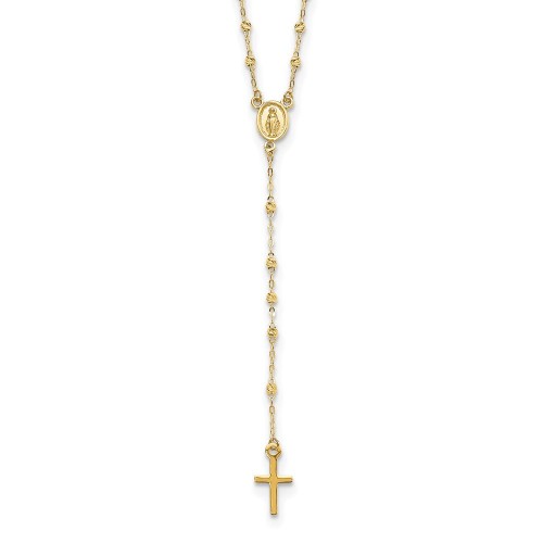14k Polished Cross and Miraculous Medal with Diamond-cut Beads Rosary Necklace Plus Extender 17in