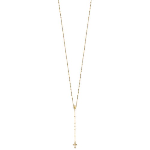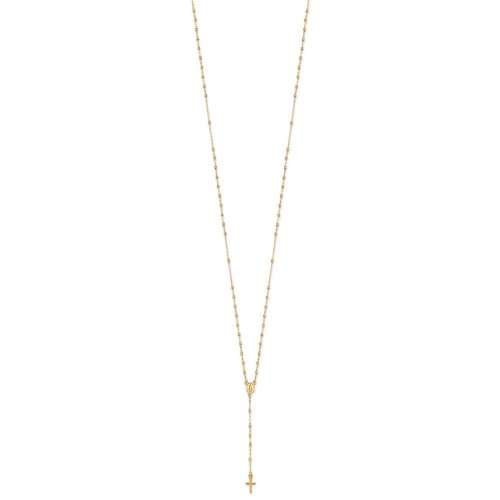 14k Polished Cross and Miraculous Medal with Diamond-cut Beads Rosary Necklace Plus Extender 17in