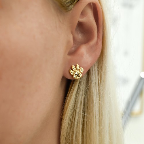 Tiger Paw “M” Stud Earrings – 14K Yellow Gold