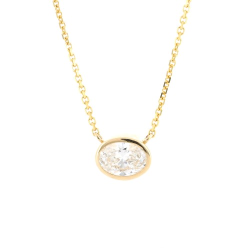 The 0.75ct Lab-Grown Marquise Diamond Bezel Pendant in 14K Yellow Gold features a striking F/VVS2 marquise diamond set in a sleek bezel setting. Suspended from an 18-inch chain, this pendant offers a modern yet timeless design. Available at Buchroeders Jewelers.