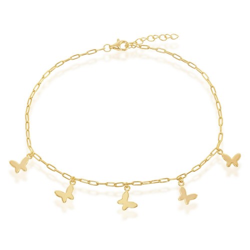 Sterling Silver Butterfly Charms Paperclip Anklet – Gold Plated