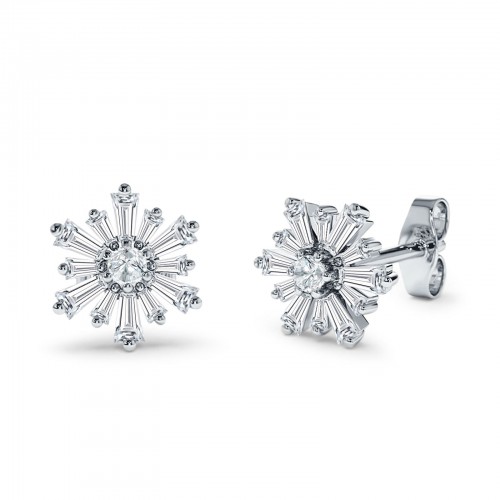 Round Black CZ Flower Heart Designer Fishhook Earring 925 Sterling Silver Wholesale 21mm
