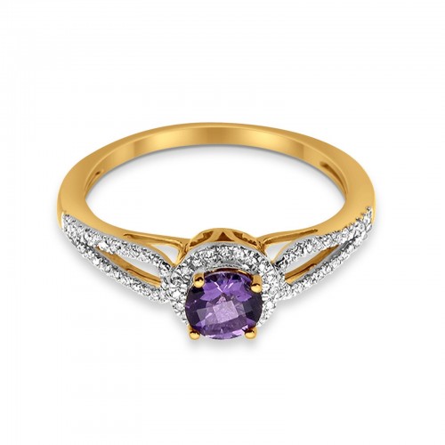 10K 0.74ct Diamond Ring Yellow Gold Green Amethyst 8mm Round Size 6.5