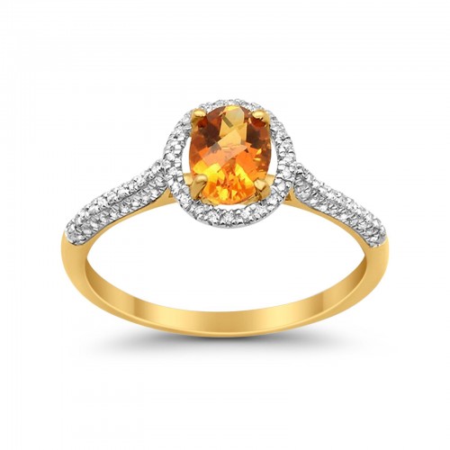 10K 0.9cts Yellow Gold Oval Citrine Gemstone & Diamond Ring Size 6.5